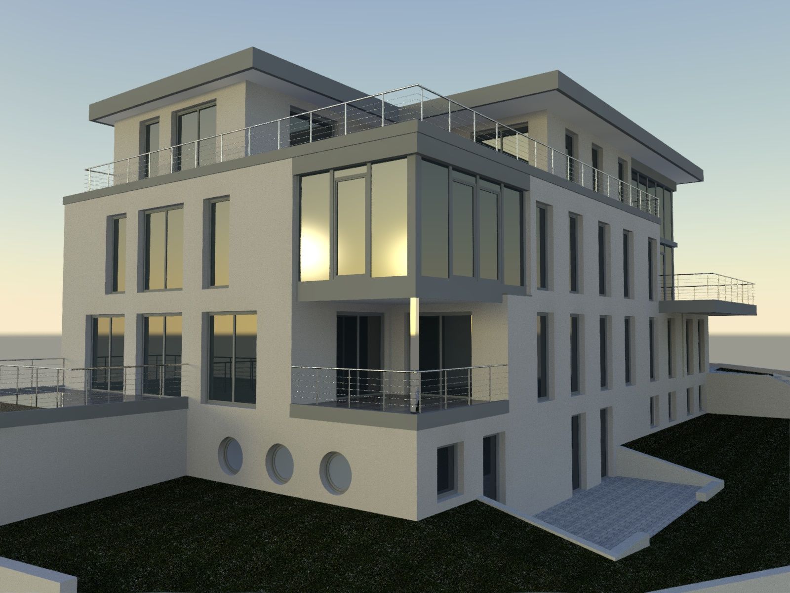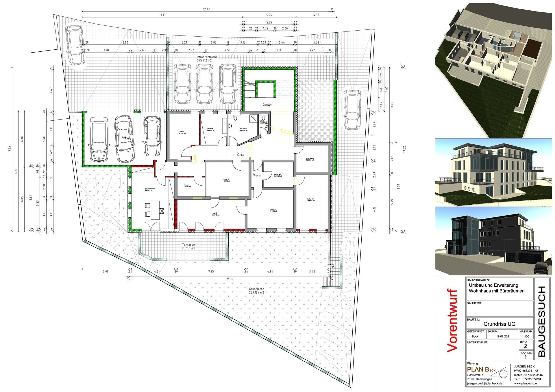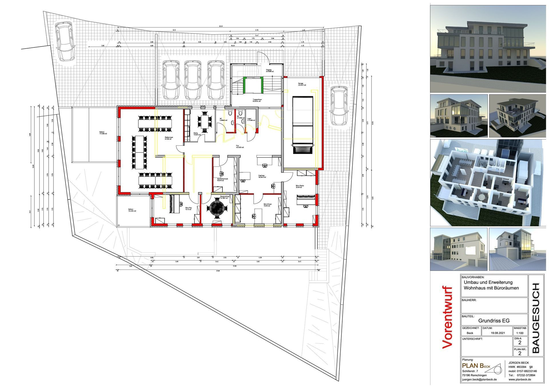 Geplanter Umbau, Erweiterung und Aufstockung eines Wohnhauses zur Gewerbeimmobilie mit Wohnung