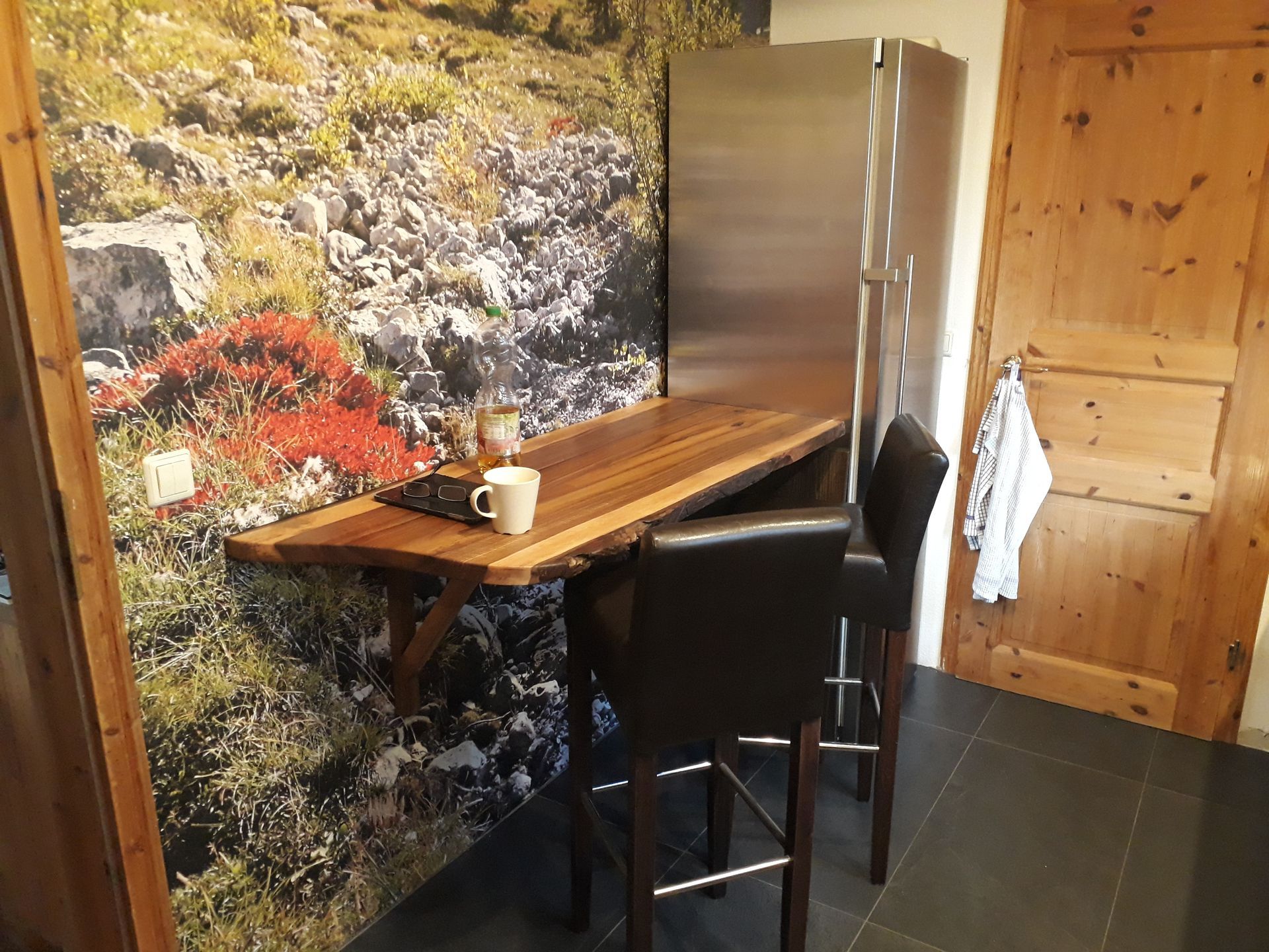Den Nussbaum habe ich drei Jahre zuvor selbst gefällt, vom mobilen Sägewerk schneiden lassen und an einer trockenen aber zugigen Stelle aufgestapelt. Die anderen hier gezeigten Möbel- oder Präsentationsstücke sind ebenfalls aus diesem Nussbaum. Leider ist er fast vollständig verbaut und somit nichts mehr übrig.